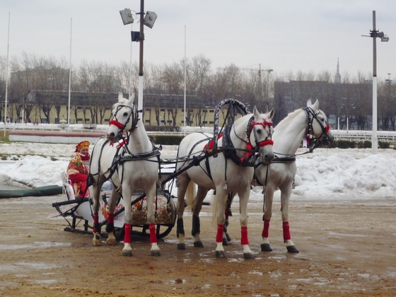 Вход на ипподром сегодня был свободным, погода теплой, а программа мероприятия – необыкновенно насыщенной, благодаря чему на трибунах собралось множество зрителей. Помимо заядлых любителей бегов, которые толпились у касс тотализатора, а затем с азартом подгоняли своих фаворитов громкими криками на финише, на трибунах ЦМИ сегодня можно было увидеть целые семьи, которые решили провести этот воскресный день здесь. В перерывах между заездами рысаков состоялись соревнования по фигурной показательной езде русских троек. Вникнуть в правила соревнований и в различные тонкости искусства управления тройкой зрителям помогали замечательные комментарии Аллы Михайловны Ползуновой. Ни для кого не стало неожиданностью, что победу здесь одержала тройка под управлением мастера-наездника А.Н. Панкова с коренником Александритом. Пристяжные в ней меняются, но коренник остается неизменным, и несет себя Александрит с поистине королевским величием. Именно эта тройка участвовала в эстафете олимпийского огня в Брянске и Пензе, принимала участие в фестивале «Спасская башня», неоднократно побеждала в Чемпионатах русских троек и международных соревнованиях. После объявления результатов три тройки порадовали зрителей филигранной параллельной фигурной ездой. Эффектно смотрелись вороные красавцы, которыми управлял мастер-наездник А.Д. Корчагин. Невозможно было оторвать взгляд и от серой тройки Музея русской тройки и орловского рысака, управляемой Л.Р. Шевченко. Ее кони, словно летящие над землей под перезвон бубенцов, волей-неволей напоминают знаменитое гоголевское "Эх, тройка! птица тройка, кто тебя выдумал? знать, у бойкого народа ты могла только родиться..." Но сегодня все желающие могли не только посмотреть на мощь и грацию лошадей со стороны, но и прикоснуться к волшебному конному миру. Так, дети с удовольствием катались на лошадях и пони, и очень много людей в этот день посетили музей ипподрома, познакомились с его богатой историей и историей отечественного рысистого коневодства.