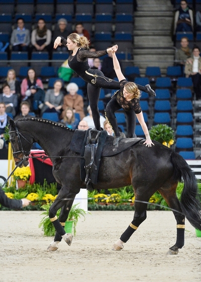 В программе Па-де-де соревновались всего три пары. Красочный номер "Ромео и Джульетта" принёс немцам Тимо Гердесу и Джолине Оссенберг 6.743 балла. Ид, лошадь призера мужского зачета Носса, снова вышла на манеж. Теперь на нем выступала пара из Франции Люси и Симон Шевраль. Они набрали 7.772 балла. Отличный результат, но он, увы, не позволил паре догнать чемпионок- сестёр Кассиди и Кимберли Палмер из США. Девушки исполнили номер под рождественскую мелодию, набрав 7.537 баллов.
