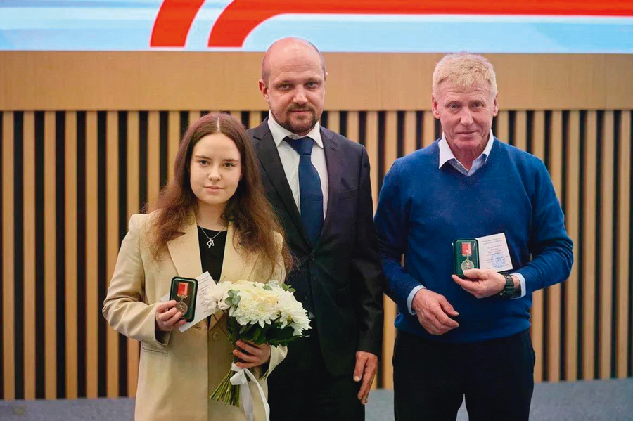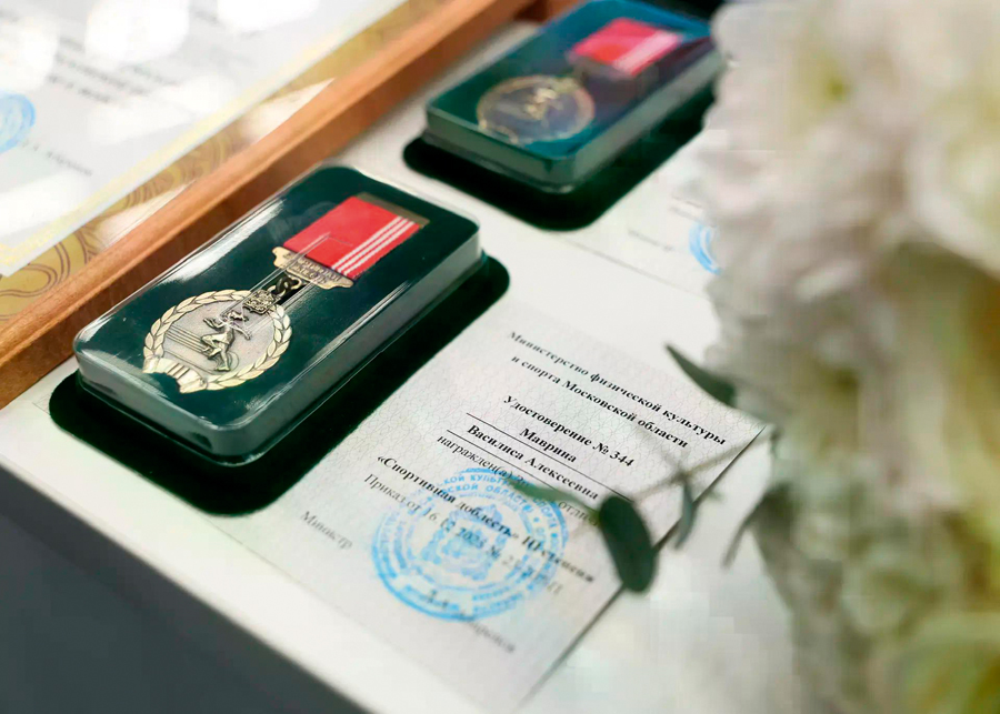 награждение спортсменки и ее тренера Валерия МАРТЫШЕВА знаком отличия «Спортивная доблесть III степени» (фото: ФКСМО)