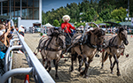 Внешне это выглядит, как обычный турнир по выездке: всадник, лошадь, площадка 20 х 60. Разницу замечаешь, взглянув на табло: вместо привычных имен и фамилий спортсменов – крупным шрифтом кличка, заводчик, племенной союз (порода), и уже потом имя, фамилия и национальная принадлежность. Которая,
