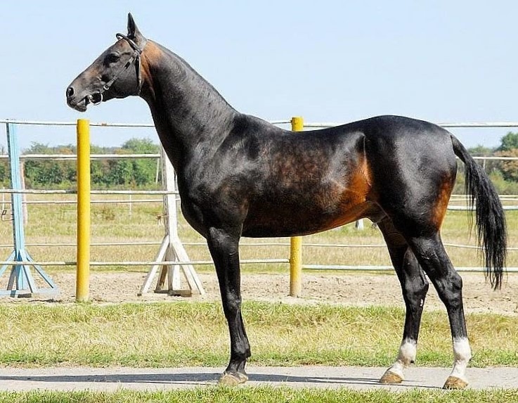 Читатель "Золотого Мустанга" уже неоднократно встречался с Мургабом на страницах любимого журнала. Этот яркийц жеребец родился в 1996 году от выводного из Туркмении Гайгысыза (Караман – Сыягуль, линия Посмана) и выводной из Дагестанского конного завода Миллет (Дагестан – Михманли, линия Гелишекли). В возрасте полутора лет поступил в тренотделение к Александру Бочкалову и скакал на Пятигорском конном заводе, где выиграл осенний приз Эверды Телеке, остался 2-м в призе Закрытия скакового сезона и 4-м -в Большом Всероссийском призе (Дерби). Также удостоился титулов Юный Чемпион России-1998 и Чемпион России-1999.